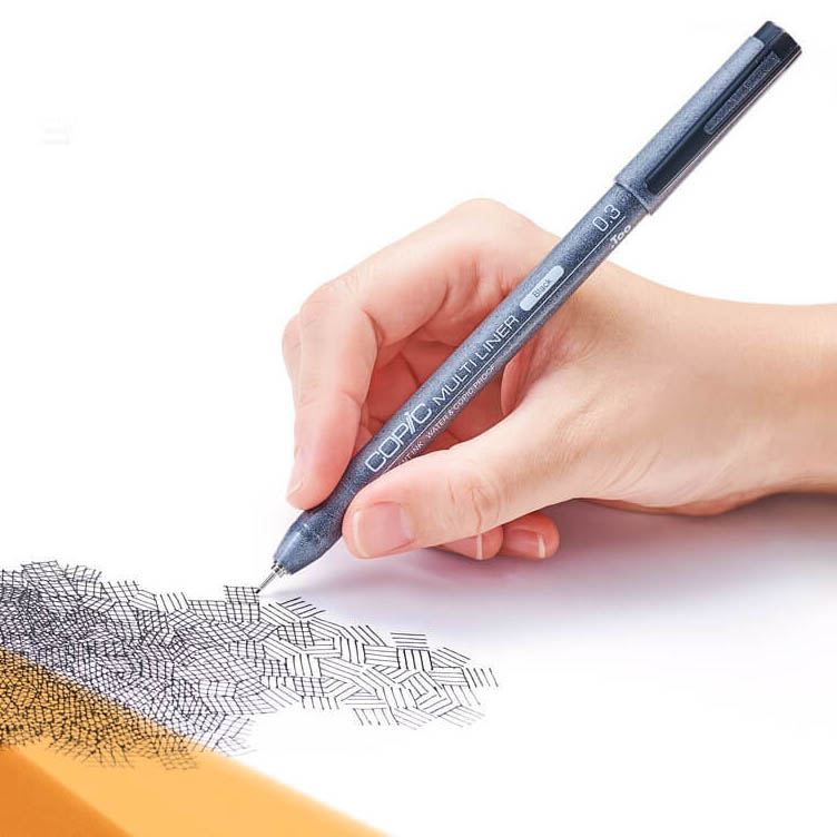 Los tiralíneas Multiliner Copic color negro se caracterizan por permitir una amplia gama de detalle, además de poseer tinta pigmentada resistente al agua y al alcohol, ideal para ser usada con marcadores Copic. La tinta no se difumina ni se desvanece, y el flujo de tinta es uniforme, ideal para todo tipo de bocetos e ilustraciones. Disponibles en una gran variedad puntas de diferentes tamaños, además de formato pincel y punta caligráfica.
